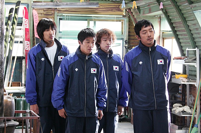 1996년 전라북도 무주, 동계올림픽 유치를 위해 정식 종목 중 하나인 스키점프 국가대표팀이 급조됩니다. 이에 전(前) 어린이 스키교실 강사 방종삼(성동일 분)이 국가대표 코치로 임명되고, 그의 온갖 감언이설에 정예(?) 멤버들이 모이게 됩니다. 전(前) 주니어 알파인 스키 미국 국가대표였다가 친엄마를 찾아 한국에 온 입양인 밥(하정우 분), 여자 없으면 하루도 못 버틸 나이트 클럽 웨이터 흥철(김동욱 분), 밤낮으로 숯불만 피우며 아버지가 시키는 대로 살아온 고깃집 아들 재복(최재환 분), 할머니와 동생을 돌봐야 하는 짐이 버거운 말 없는 소년 가장 칠구(김지석 분), 그런 형을 끔찍이 사랑하는 4차원 동생 봉구(이재응 분)까지! 방 코치는 마치 신이라도 된 것처럼 엄마와 같이 살 집이 필요한 밥에게는 아파트를, 사랑 때문에 또는 부양 가족 때문에 그들과 함께 있어야 하는 흥철, 칠구-봉구 형제, 그리고 재복에게는 군 면제를 약속하게 됩니다. 단, 금메달 따게된다면!